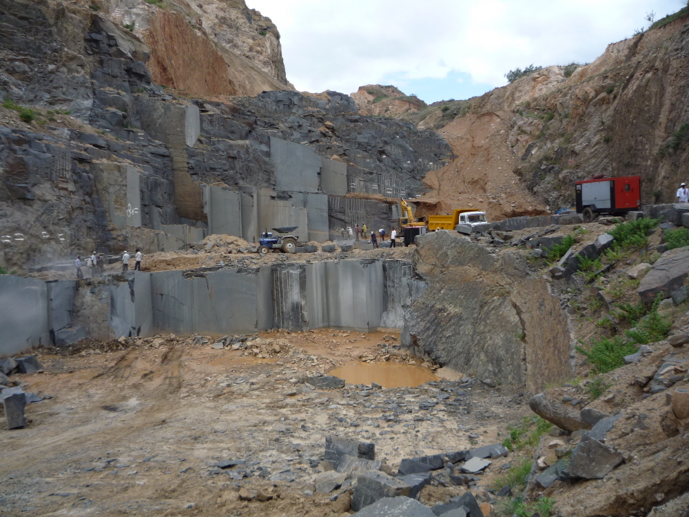 원석광산은 노천채굴로 광산의 지역의 지형과 암석층의 구조에 따라 석재의 품질이 결정됩니다